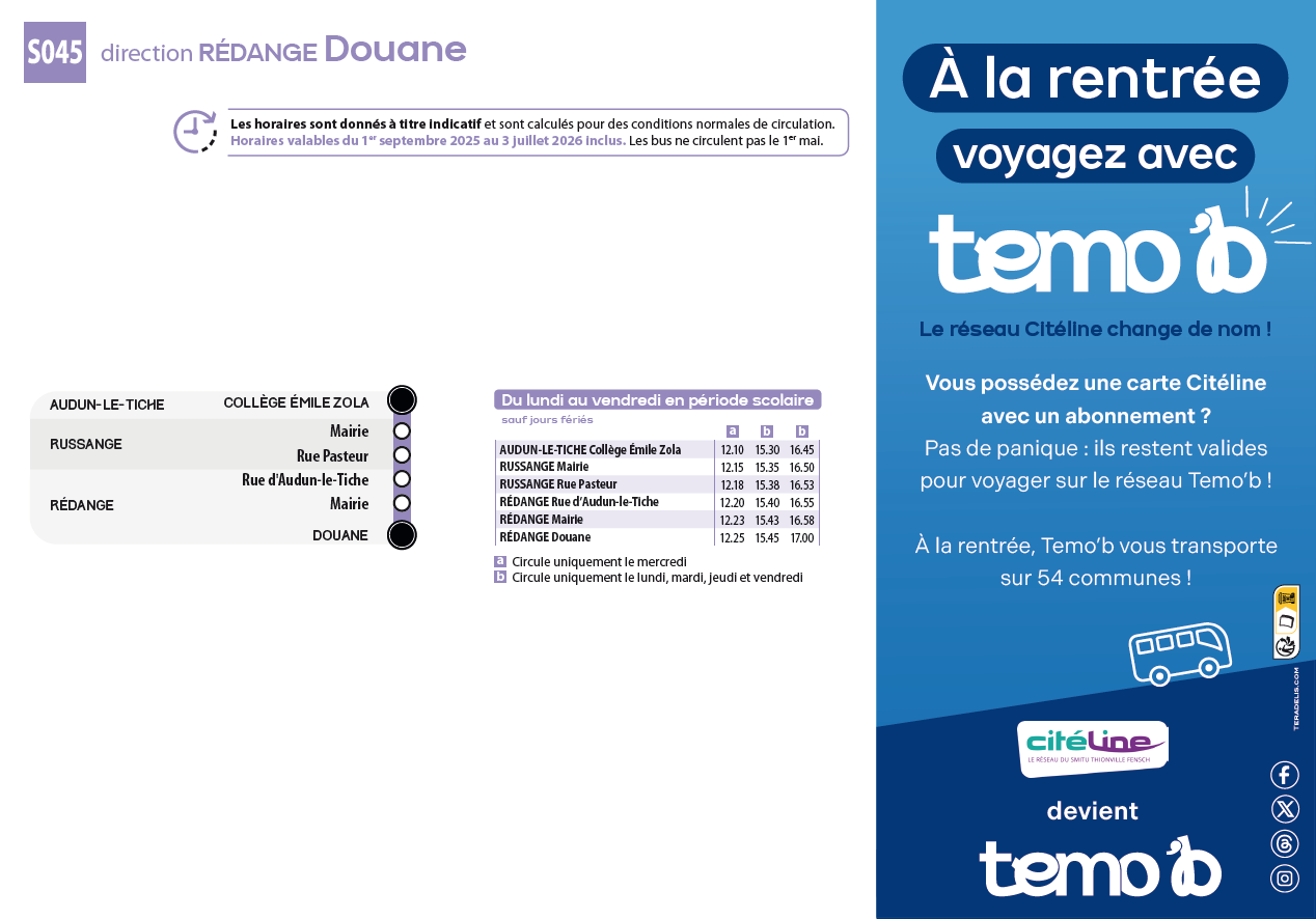 Retrouver l’ensemble des fiches horaires du territoire sur le site Temo : https://www.temo-mosellenord.fr